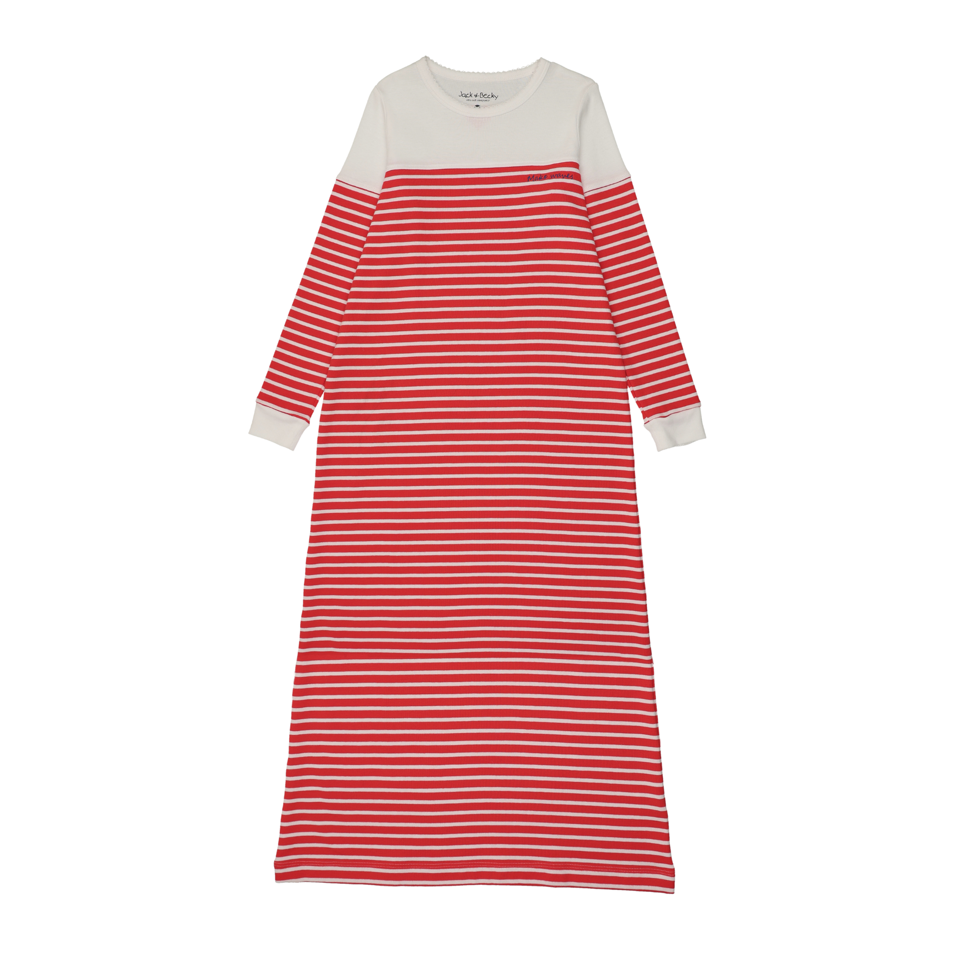Our Make Waves Nightgowns are crafted from ultra-soft fabric and designed with bold red stripes and crisp contrast trim. Finished with a playful embroidered detail, they bring classic style with a fun twist.