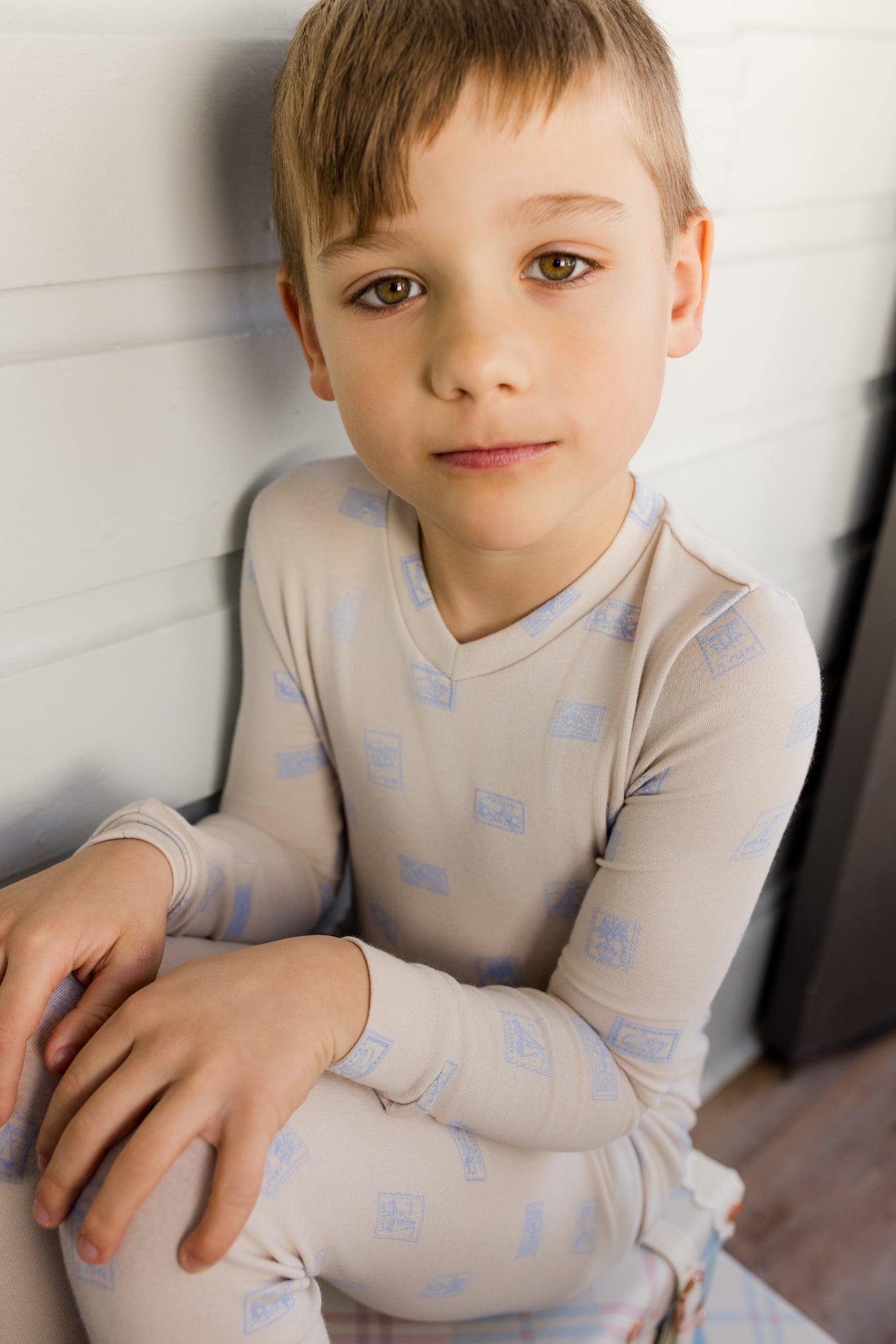 Our Stamps PJs are crafted from ultra-soft fabric with an allover blue stamp print. The perfect blend of style and cozy comfort.