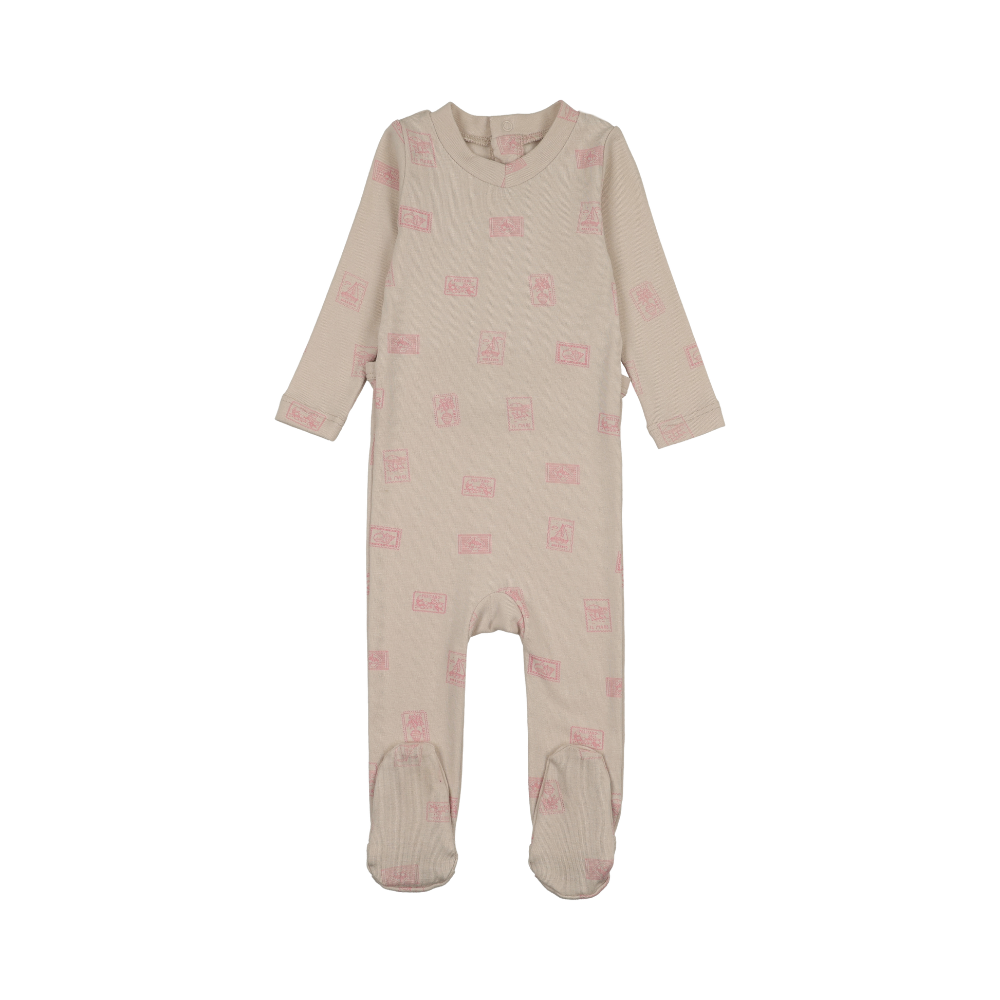 Our Stamps Footies are crafted from ultra-soft fabric with an allover pink stamp print. The perfect blend of style and cozy comfort.